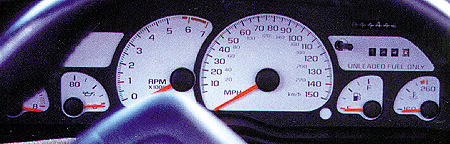 | The latest "White Face Gauges" for your car. Precision OEM true replacement lenses with full white face. Maintains ALL existing light and warning functions with crisp, easy to read indicators. | |