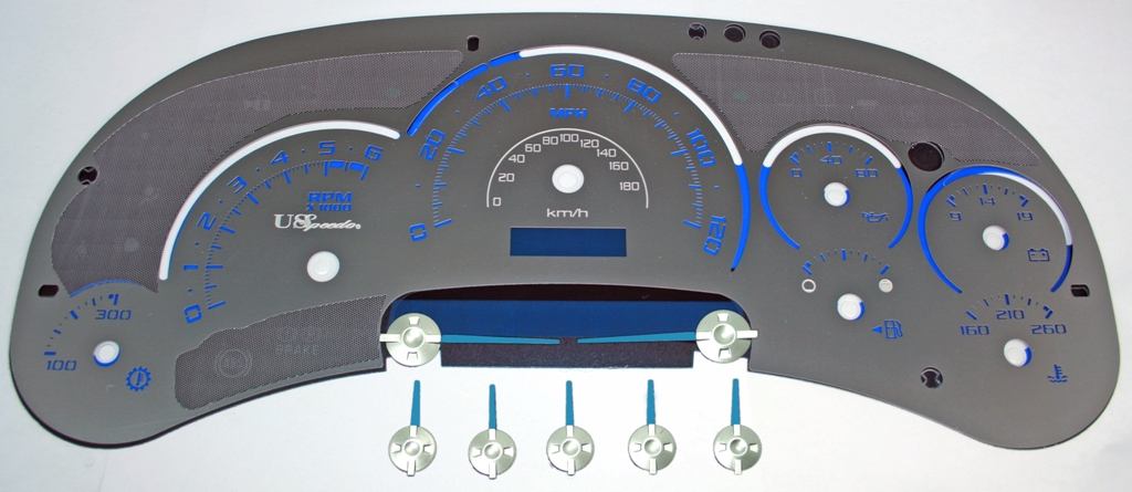 Replace your boring factory Silverado gauge faces with a Stainless Steel Gauge Face from US Speedo. These gauge faces are made of true stainless steel with a variety of color and style options. Made in the USA!