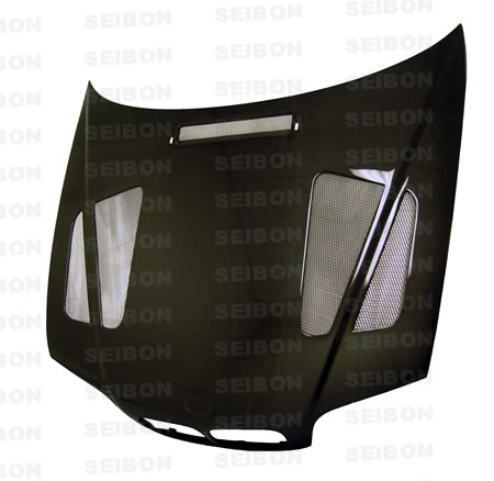 Add style and loos some weight on the nose of your 1999 2000 2001 2002 Bmw 3 Series E46 4DR with a Seibon ER Style Carbon Fiber Hood. The Seibon Bmw 3 Series E46 4DR 1999-2002 ER Style Carbon Fiber Hood is made of high quality carbon fiber using one-piece carbon sheet, so you do not see broken lines and patterns. The ER Style Carbon Fiber Hood by Seibon uses a Clear coat for shiny and durable finish that will give you the nice "wet" look as opposed to a duller look from gel coats.