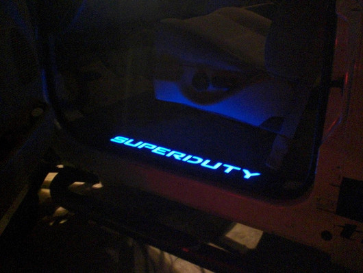 RECON's new Billet Aluminum Door Sills feature E.L. that illuminates when each of the front doors are opened. When the doors are closed, the E.L. returns to the off position. They can also be activated by the dome light comtroll to be either on or off. This new item has already won several new product awards including 1st place in the prestigous "Best New Product Competition at Truck Fest West 2007" in California.