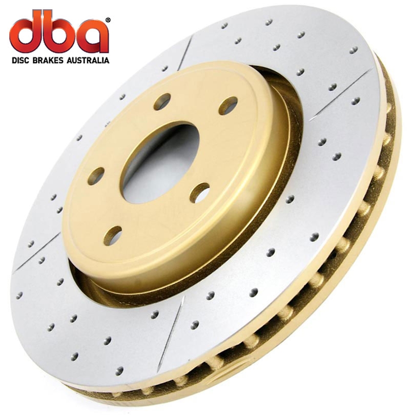 The DBA Street Series Cross Drilled and Slotted Brake Rotor is designed to be an upgrade from stock rotors while remaining street driver friendly. Every DBA Street Brake Rotor is mil balanced to eliminate vibration which can damage wheel bearings and suspension components. DBA Street Cross Drilled and Slotted Brake Rotors all come with a corrosion resistant coating that keeps them looking new and keep the rotor hats from rusting. In addition to all of this DBA uses its patented Kangaroo Paw ventilation which provides superior strength and increased cooling over normal vented Brake Rotors. Replace your worn Infiniti G35 2002-2002 factory Rear Brake Rotors with DBA Street Series Rotors for a decrease in stopping distance that you can feel.
