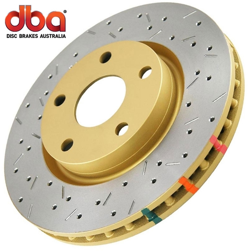 The DBA 4000 Series Cross Drilled and Slotted Brake Rotor is designed to be an upgrade from stock rotors while remaining street driver friendly. Every DBA 4000 Brake Rotor is mil balanced to eliminate vibration which can damage wheel bearings and suspension components. DBA 4000 Cross Drilled and Slotted Brake Rotors all come with a corrosion resistant coating that keeps them looking new and keep the rotor hats from rusting. In addition to all of this DBA uses its patented Kangaroo Paw ventilation which provides superior strength and increased cooling over normal vented Brake Rotors. Replace your worn Hummer H3 2006-2007 factory Front Brake Rotors with DBA 4000 Series Rotors for a extreme street stops and track use.